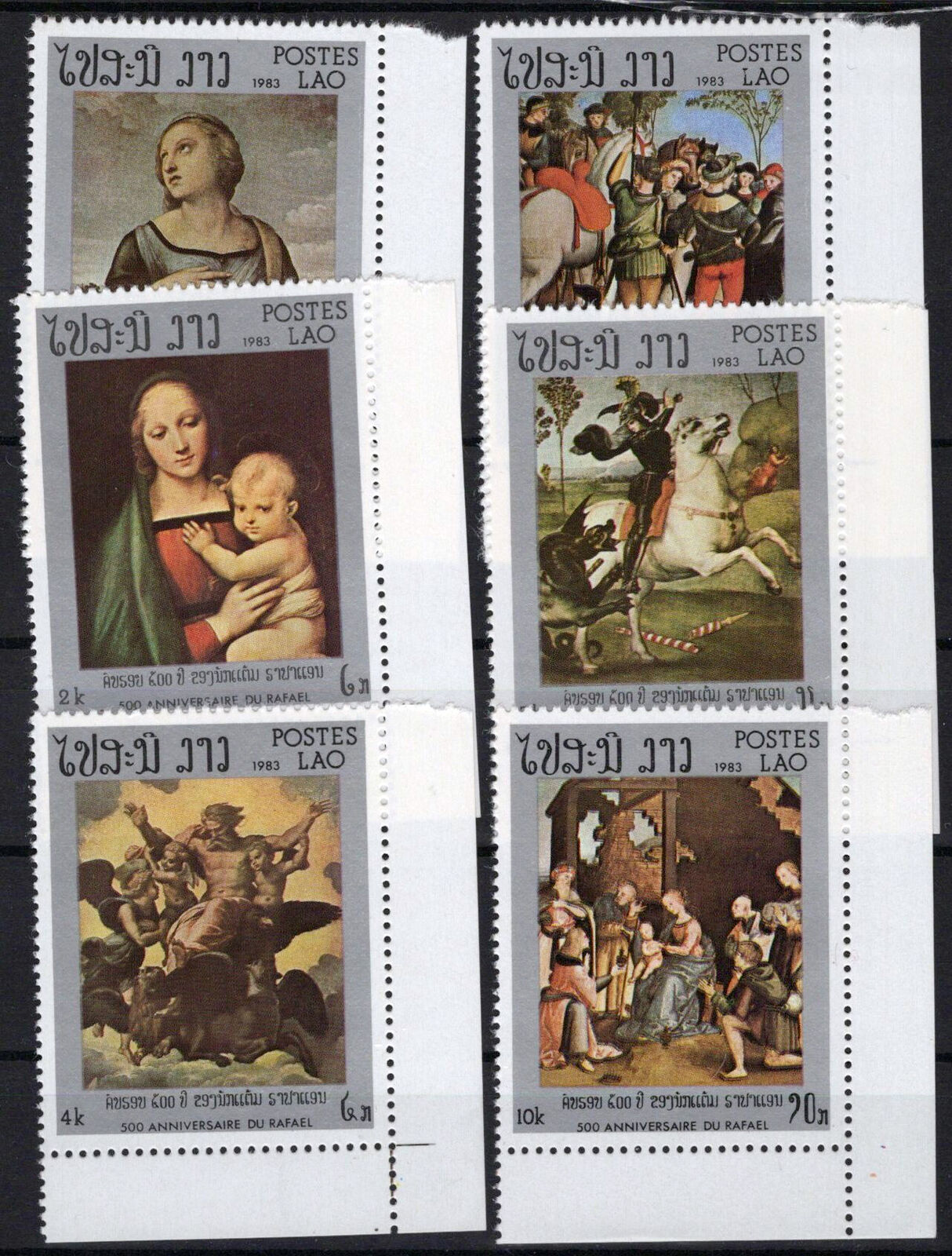 ZAYIX Laos 442-447 MNH Paintings Artist Raphael Madonna Three Kings 100123S87