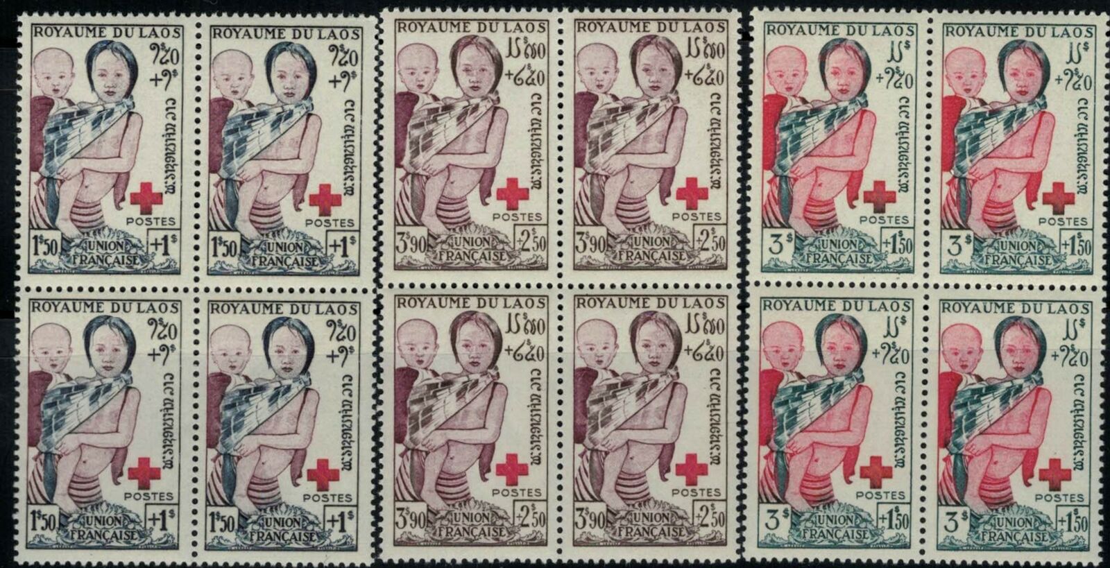 ZAYIX - Laos B1-B3 MNH Block Red Cross Laotian Children