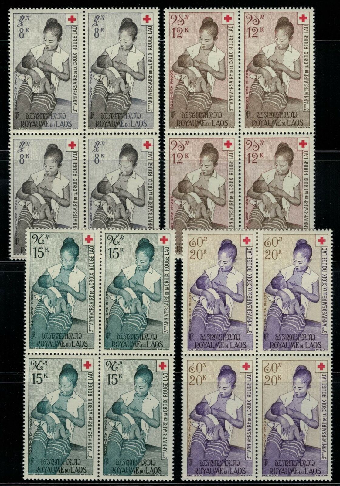 ZAYIX - Laos C31-C34 MNH Block Red Cross Anniversary Family