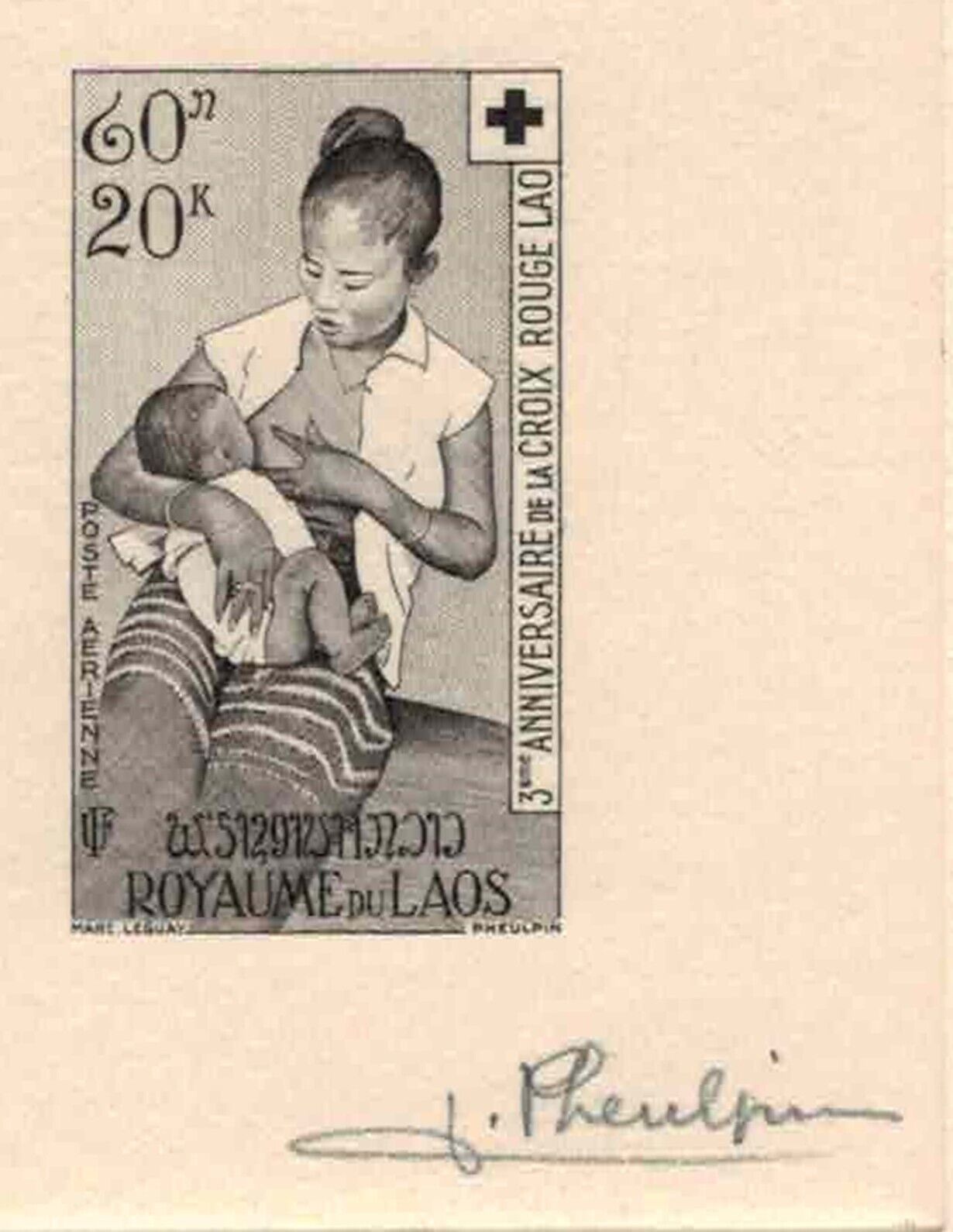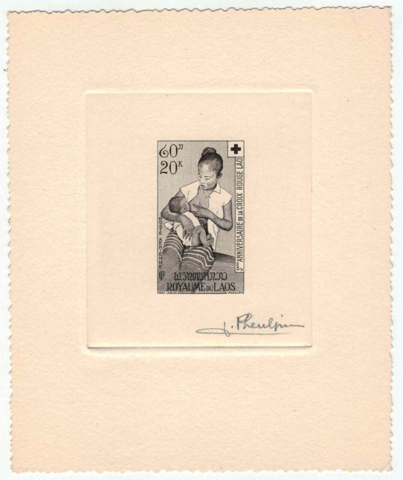 ZAYIX Laos C34 MNH Sunken Die Proof Signed By Pheulpin Red Cross 092523SM29