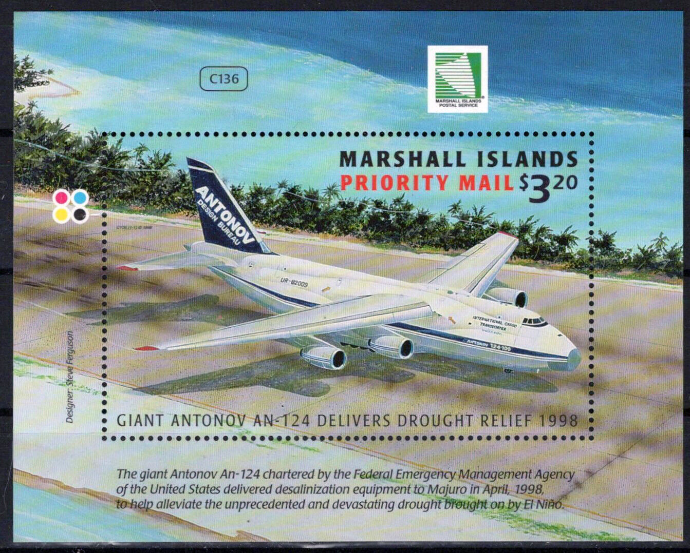 1998 Marshall Islands 678 MNH Drought Relief Priority Mail souvenir sheet, Aviation, Zayix Stamps 090223SM54M