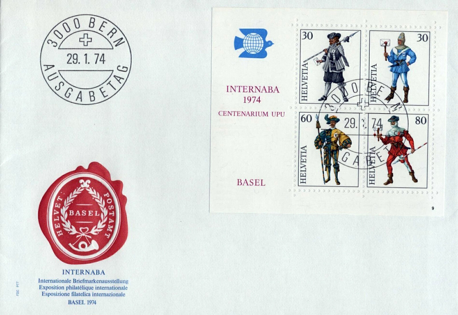 Switzerland Cover INTERNABA 1974 FDC Souvenir Sheet Military 0224M0039 ZAYIX 0224M00393