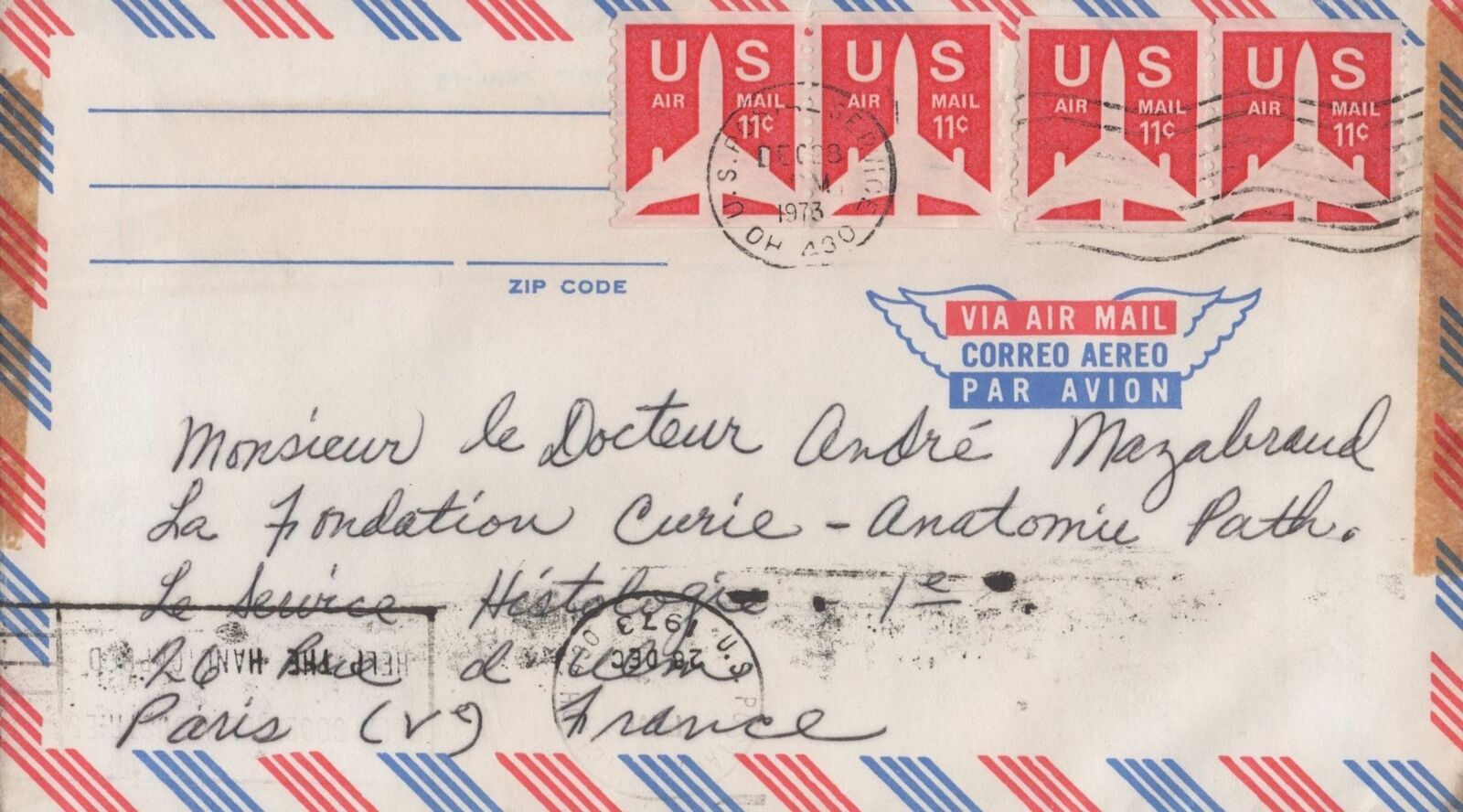ZAYIX US Air Mail 44c rate US Postal Service, OH to Paris, France 031923SM74