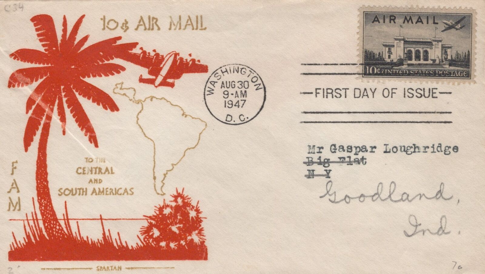 US C34-25 Spartan FDC address correction FAM airmail ZAYIX USFM102023003